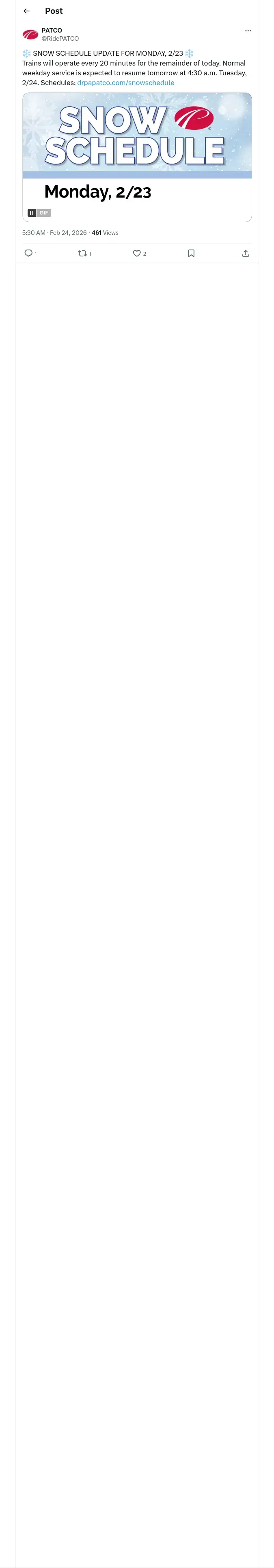 https://x.com:443/RidePATCO/status/2026031876926841273