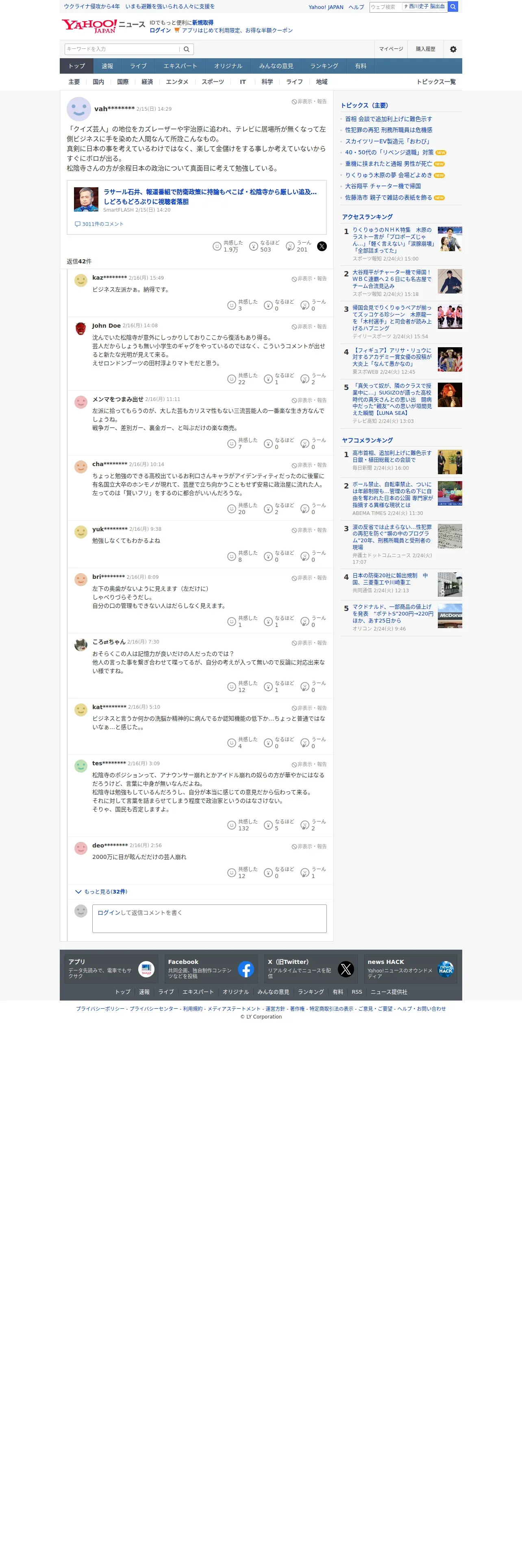 取得元URL: https://news.yahoo.co.jp:443/profile/news/comments/5132b5ae-eec4-4a3a-b7c1-95f7da2c9044
