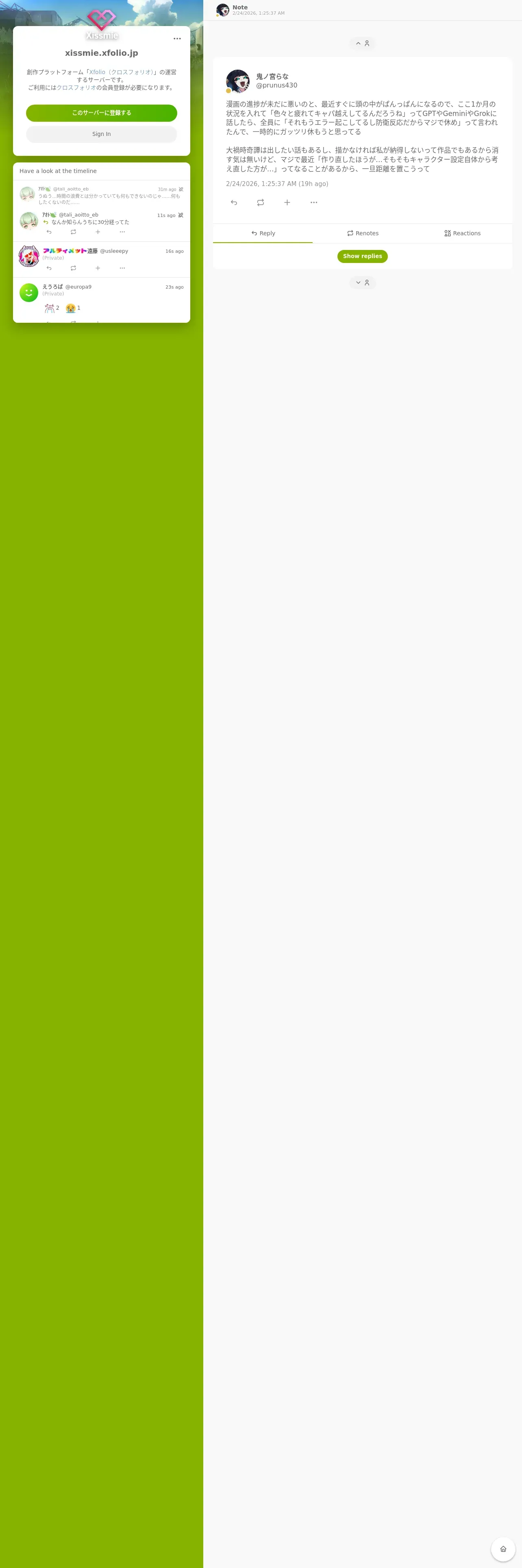 https://xissmie.xfolio.jp:443/notes/aj2ycpocn32ilih0