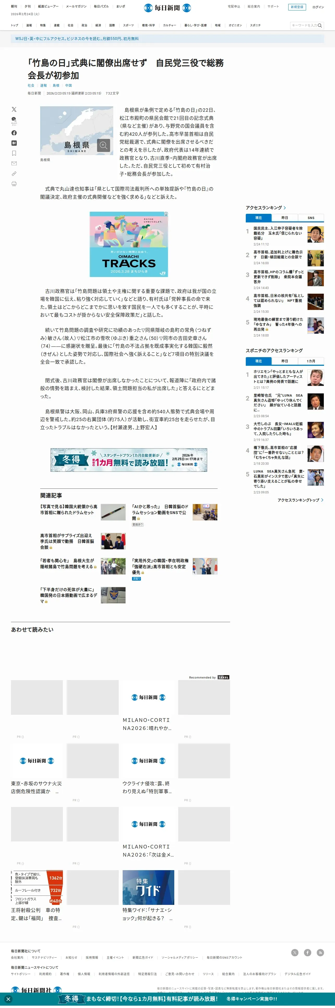 https://mainichi.jp:443/articles/20260222/k00/00m/040/233000c