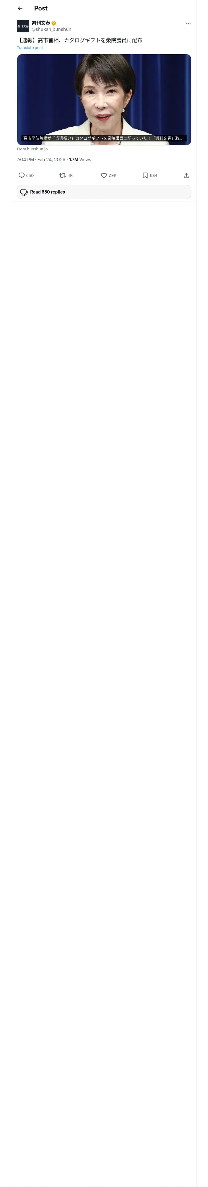 https://x.com:443/shukan_bunshun/status/2026236760003678508