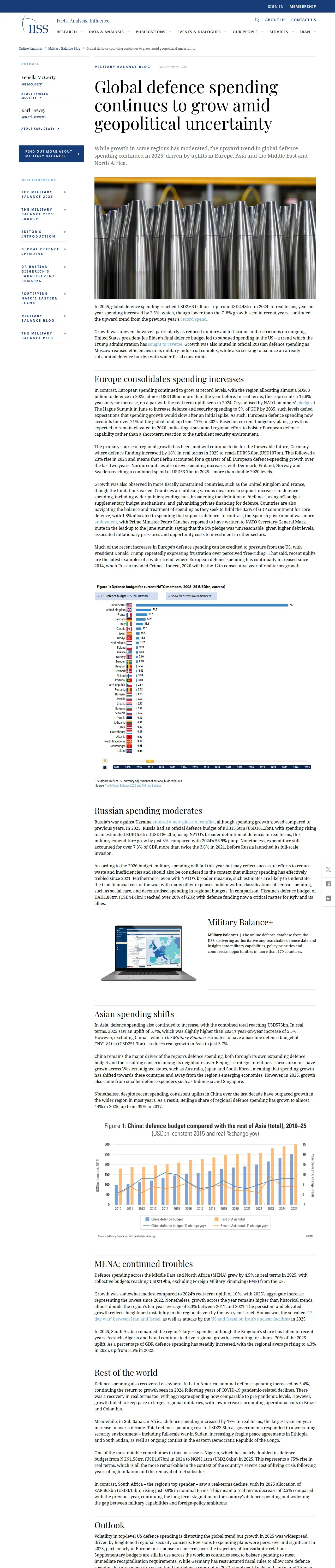 取得元URL: https://www.iiss.org:443/online-analysis/military-balance/2026/02/global-defence-spending-continues-to-grow-amid-geopolitical-uncertainty/