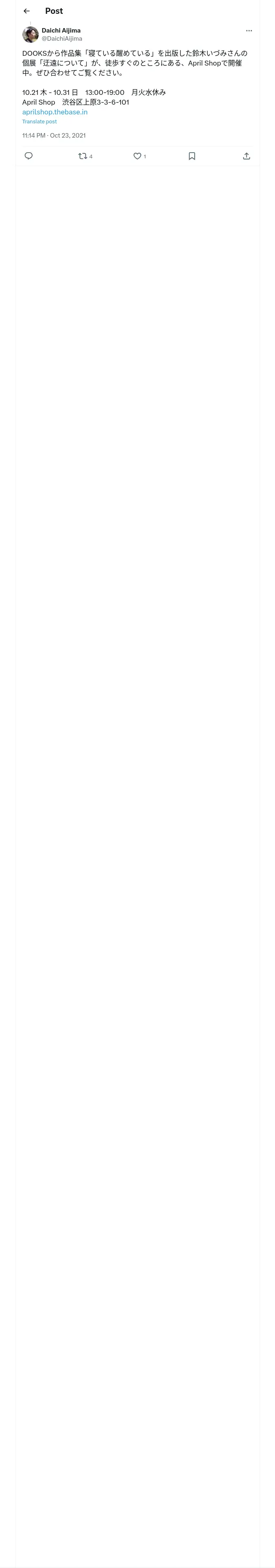 取得元URL: https://x.com:443/DaichiAijima/status/1451914926692319232