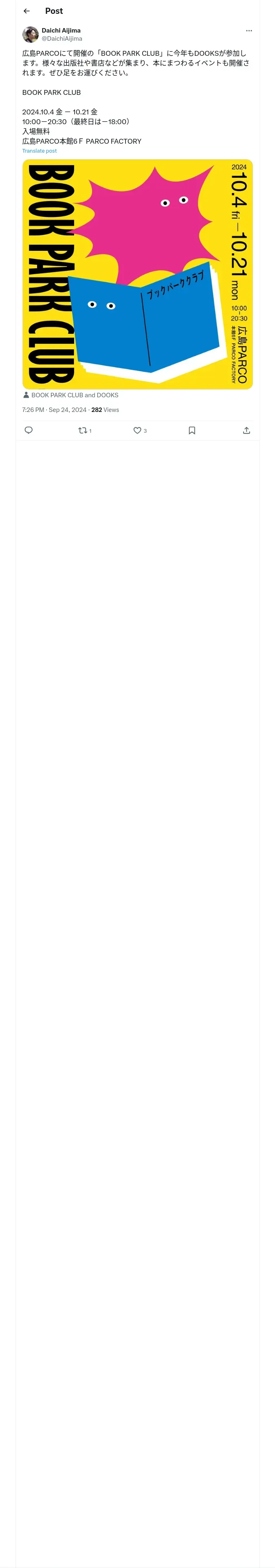 取得元URL: https://x.com:443/DaichiAijima/status/1838525309697523972