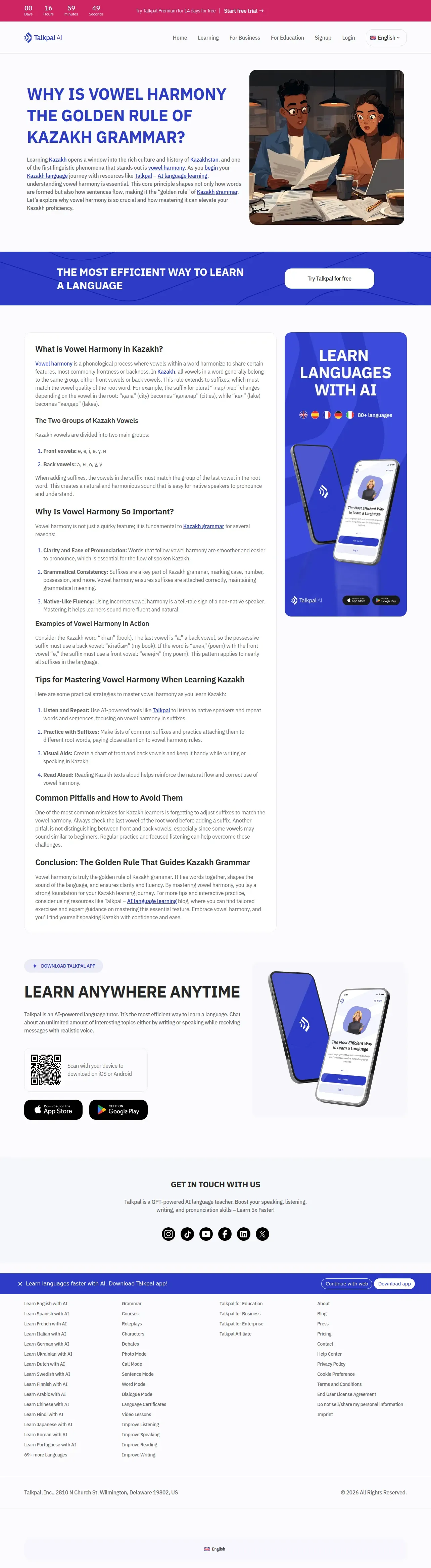https://talkpal.ai:443/culture/why-is-vowel-harmony-the-golden-rule-of-kazakh-grammar/