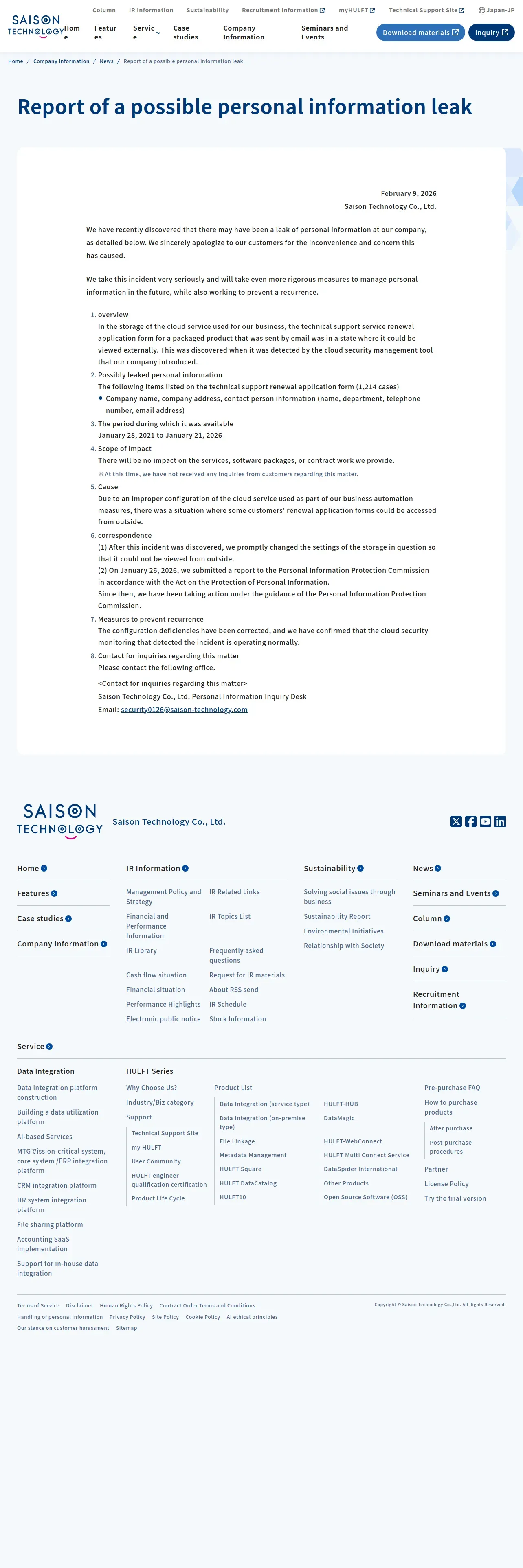 https://www.saison-technology.com:443/company/news/20260209_personal_information_leaked/