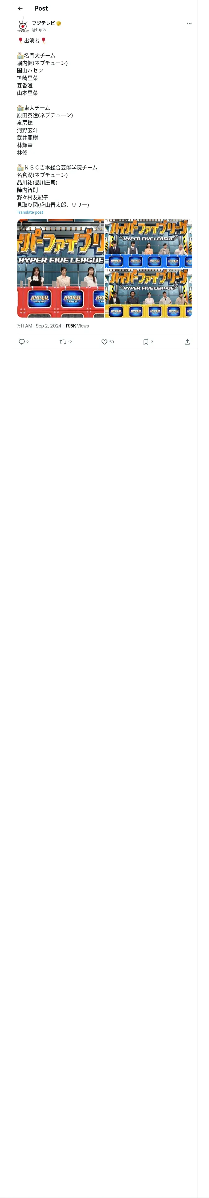 https://x.com:443/fujitv/status/1830367781759701087