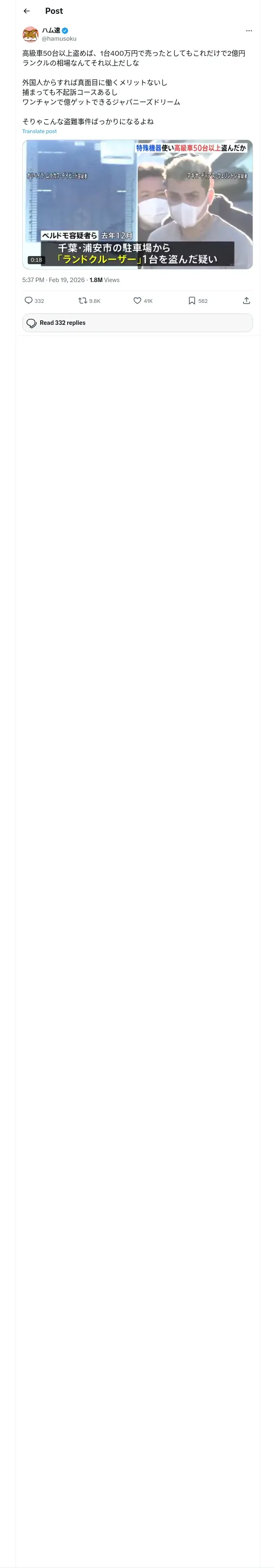 取得元URL: https://x.com:443/hamusoku/status/2024402862206558300