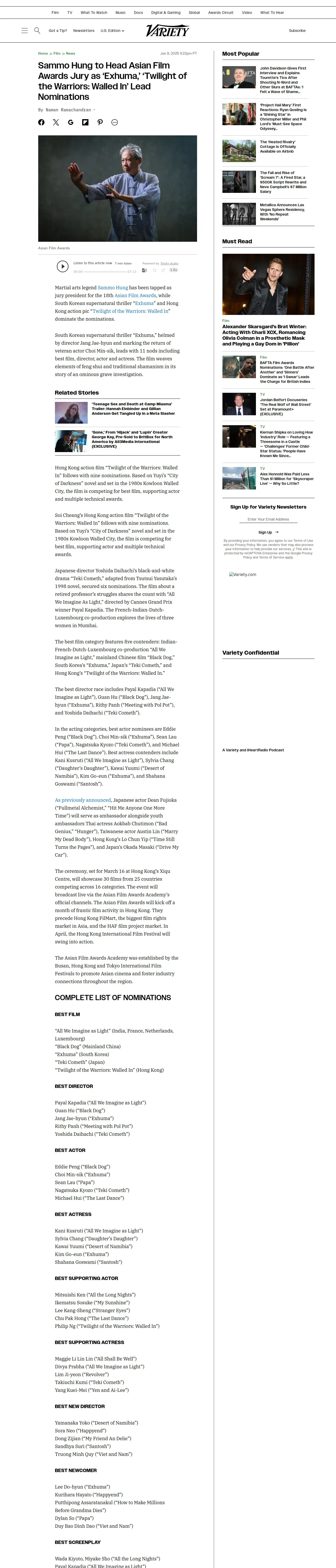 取得元URL: https://variety.com:443/2025/film/news/sammo-hung-asian-film-awards-nominations-2025-1236271487/
