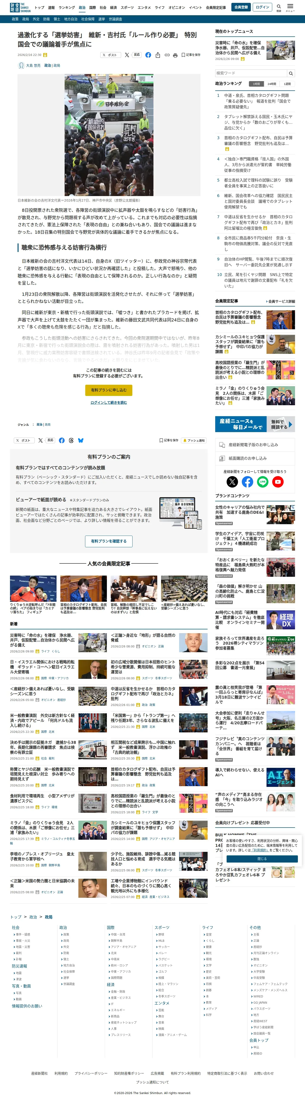 https://www.sankei.com:443/article/20260216-3VSP75TIG5P2RKRS7NJCT23RYE/