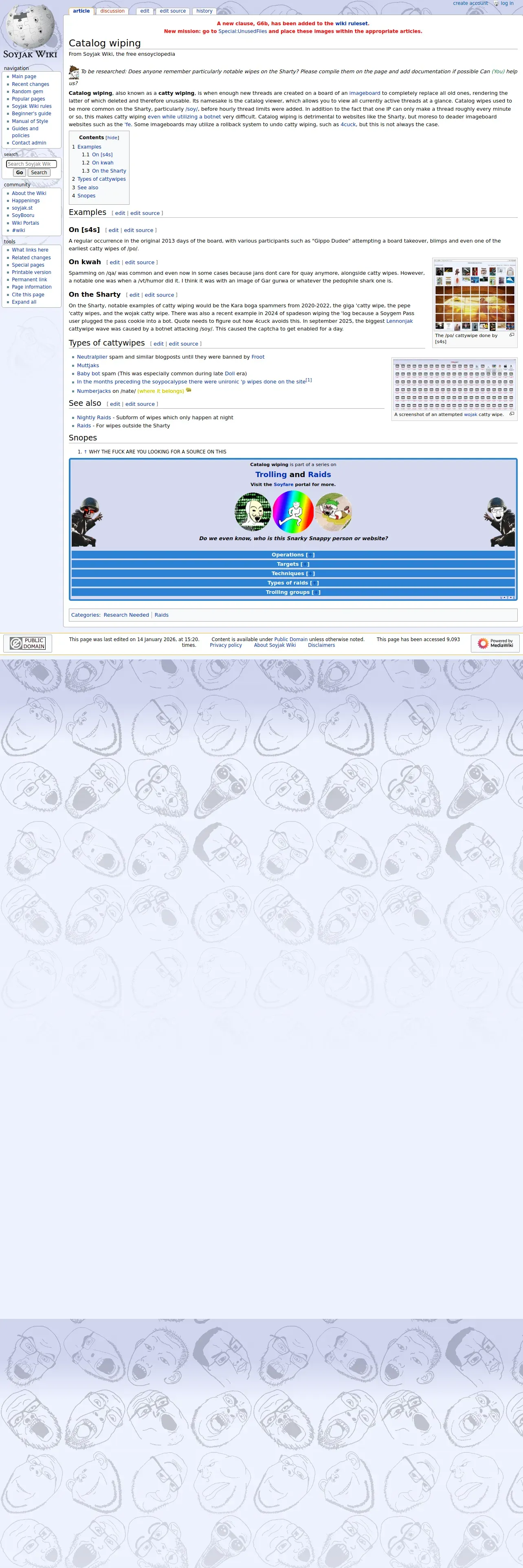 https://soyjakwiki.org:443/Catalog_wiping