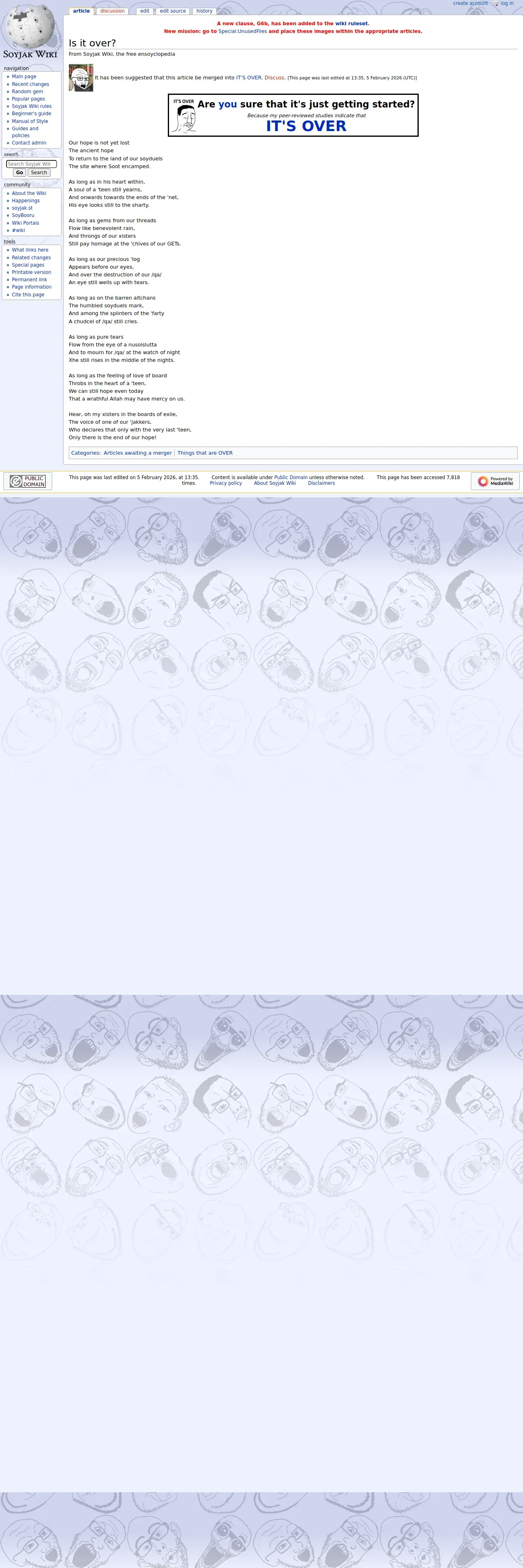 https://soyjakwiki.org:443/Is_it_over%3F