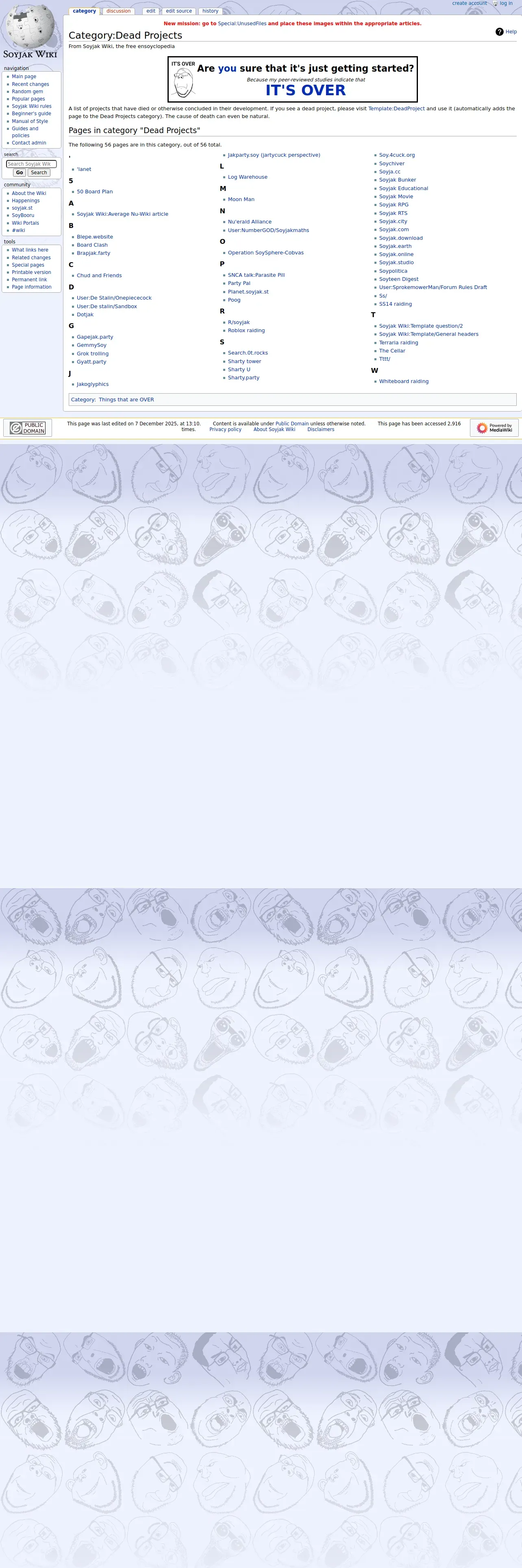 https://soyjakwiki.org:443/Category:Dead_Projects