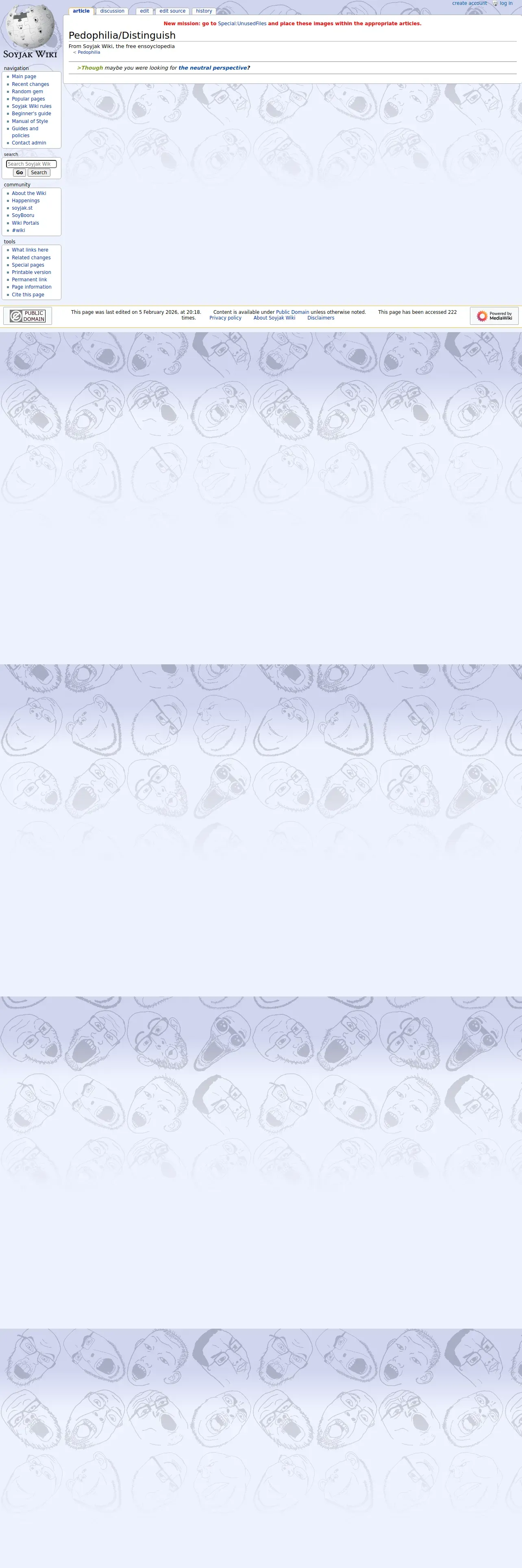 https://soyjakwiki.org:443/Pedophilia/Distinguish