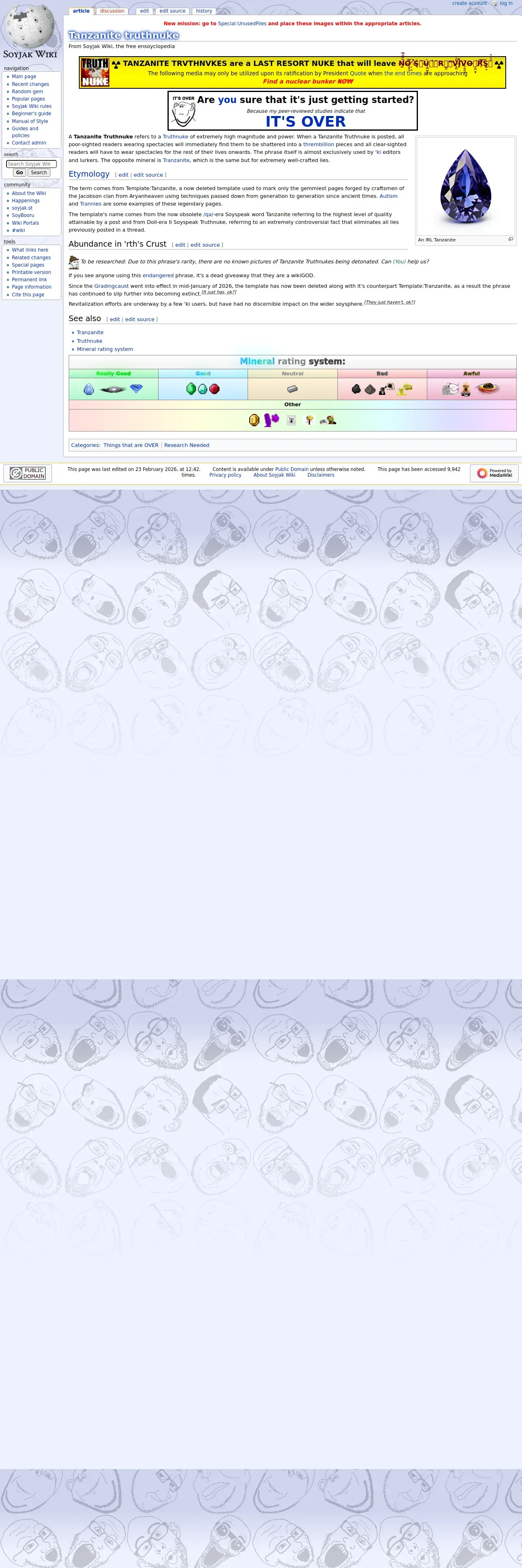https://soyjakwiki.org:443/Tanzanite_truthnuke