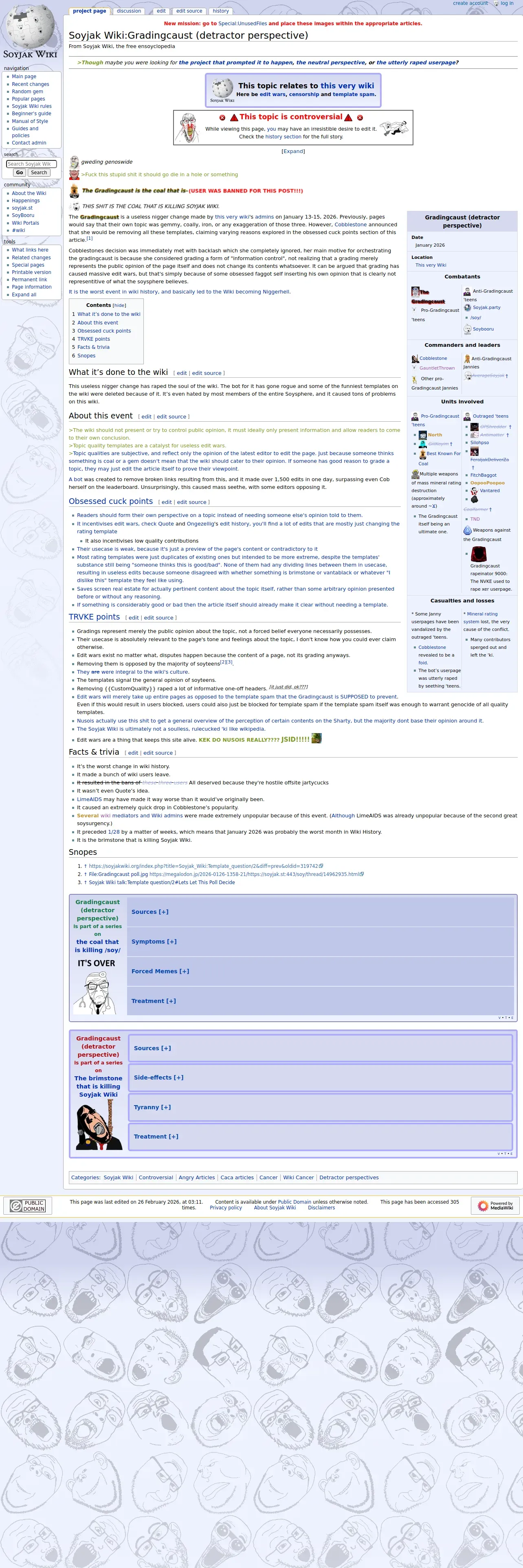 https://soyjakwiki.org:443/Soyjak_Wiki:Gradingcaust_(detractor_perspective)