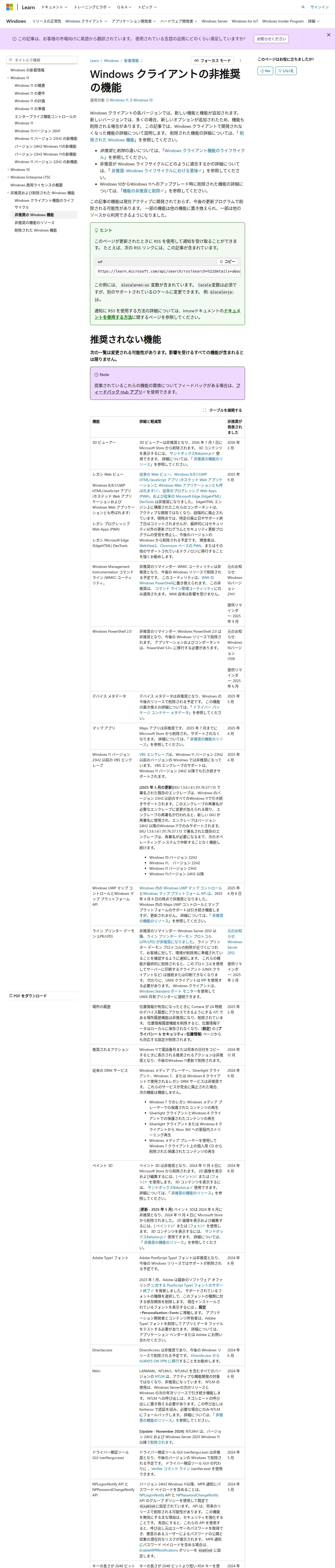 https://learn.microsoft.com:443/ja-jp/windows/whats-new/deprecated-features