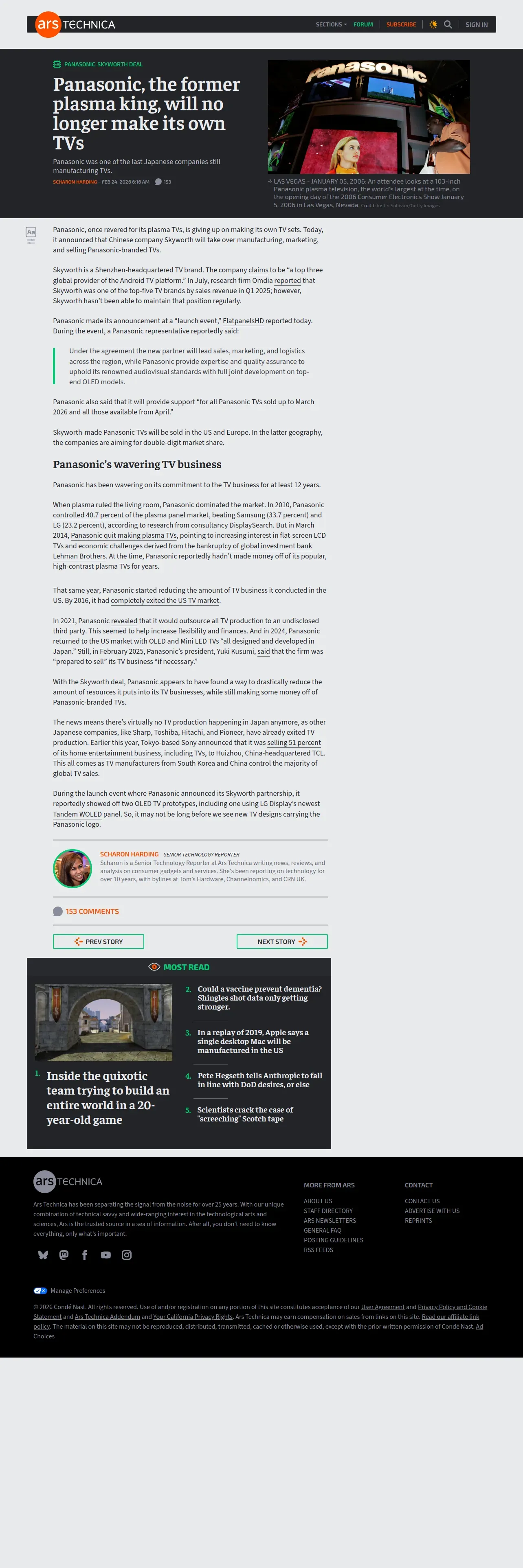https://arstechnica.com:443/gadgets/2026/02/panasonic-the-former-plasma-king-will-no-longer-make-its-own-tvs/