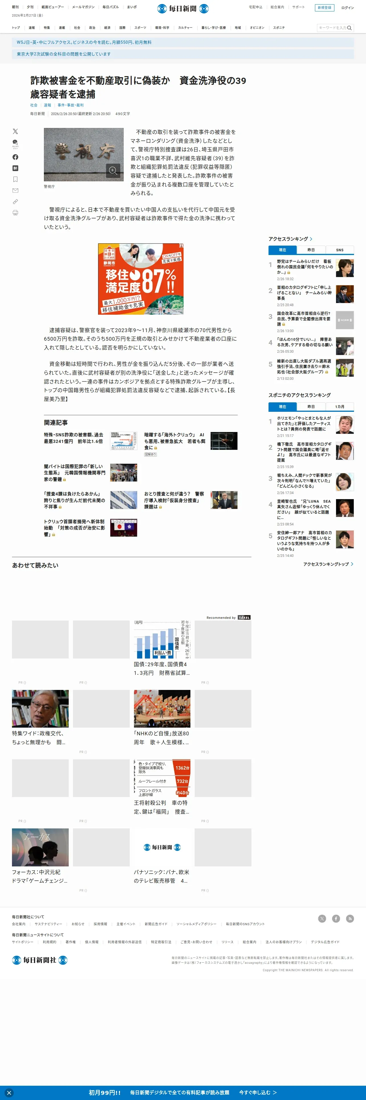 取得元URL: https://mainichi.jp:443/articles/20260226/k00/00m/040/291000c