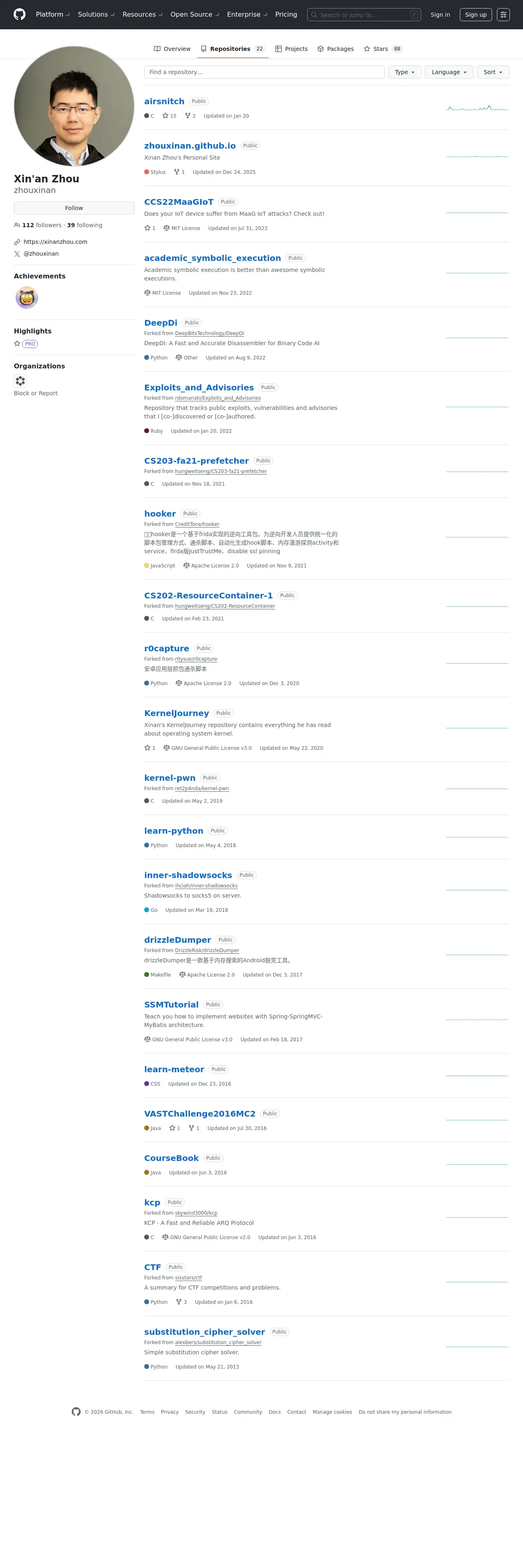 取得元URL: https://github.com:443/zhouxinan?tab=repositories