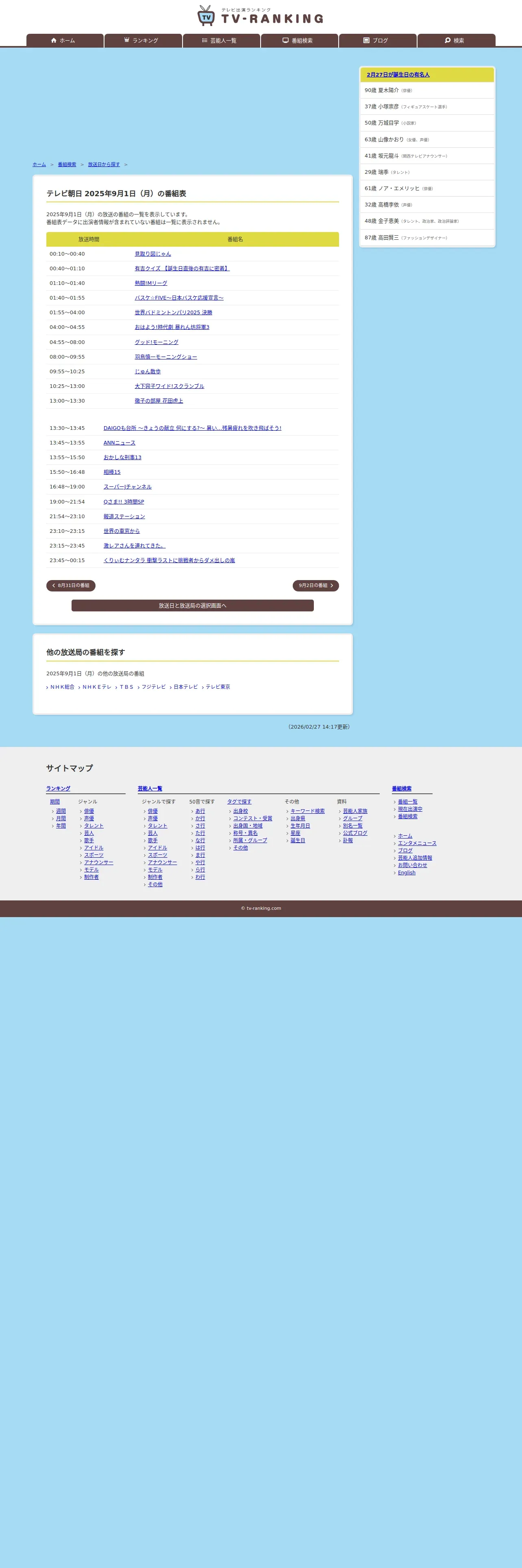 https://www.tv-ranking.com:443/program/date.php?date=20250901&sta=4