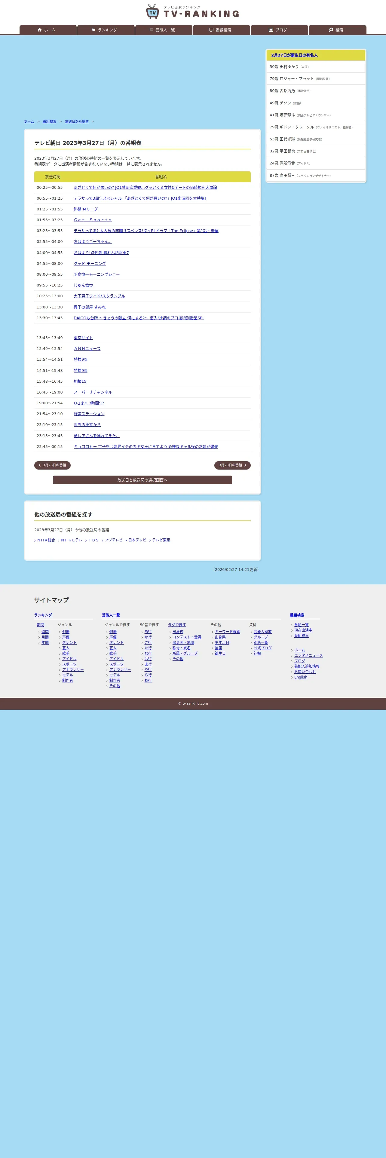 https://www.tv-ranking.com:443/program/date.php?date=20230327&sta=4