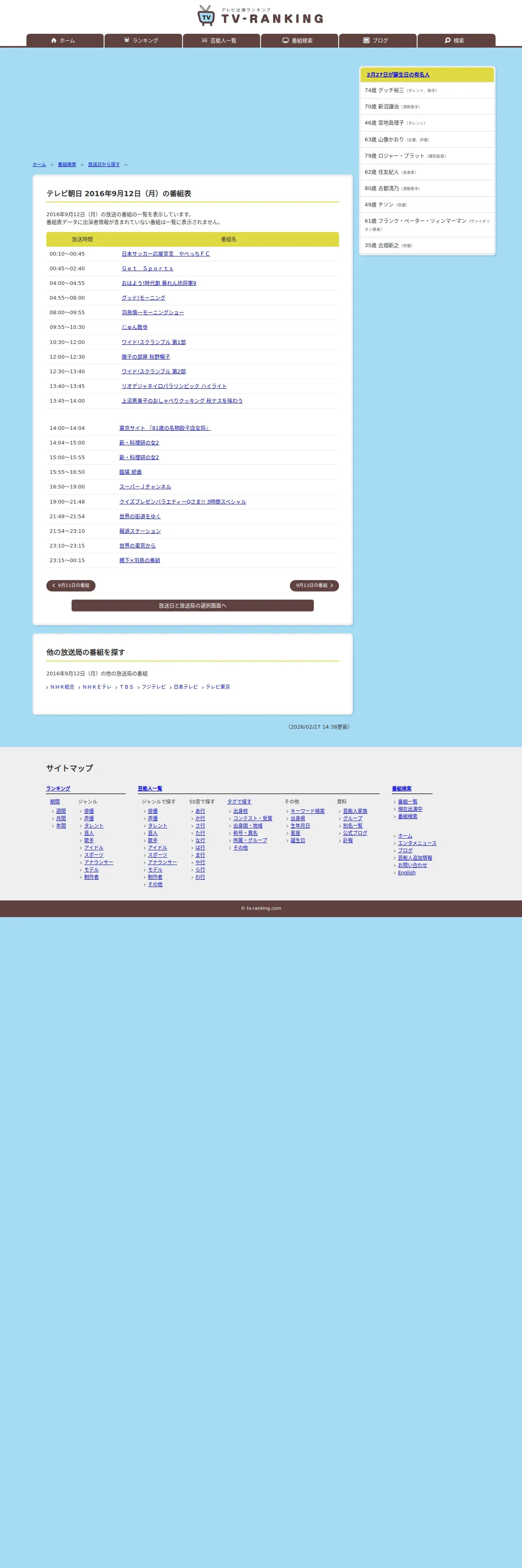 https://www.tv-ranking.com:443/program/date.php?date=20160912&sta=4