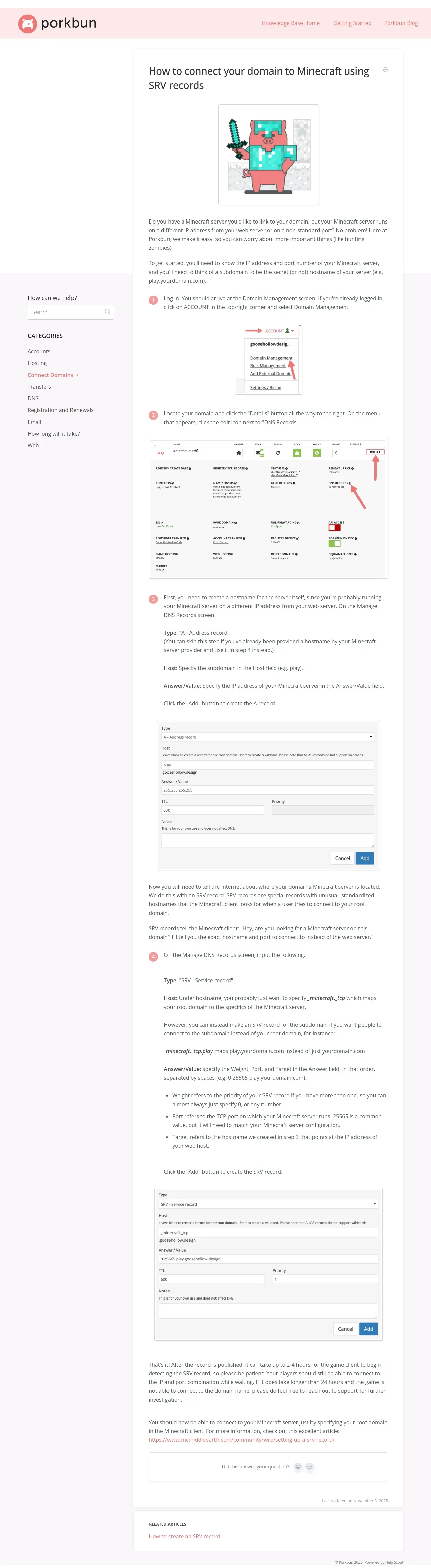 https://kb.porkbun.com:443/article/148-how-to-connect-your-domain-to-minecraft-using-srv-records
