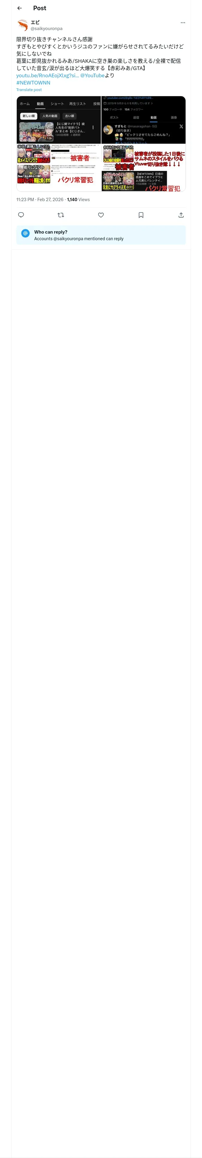 https://x.com:443/saikyouronpa/status/2027389199742292051