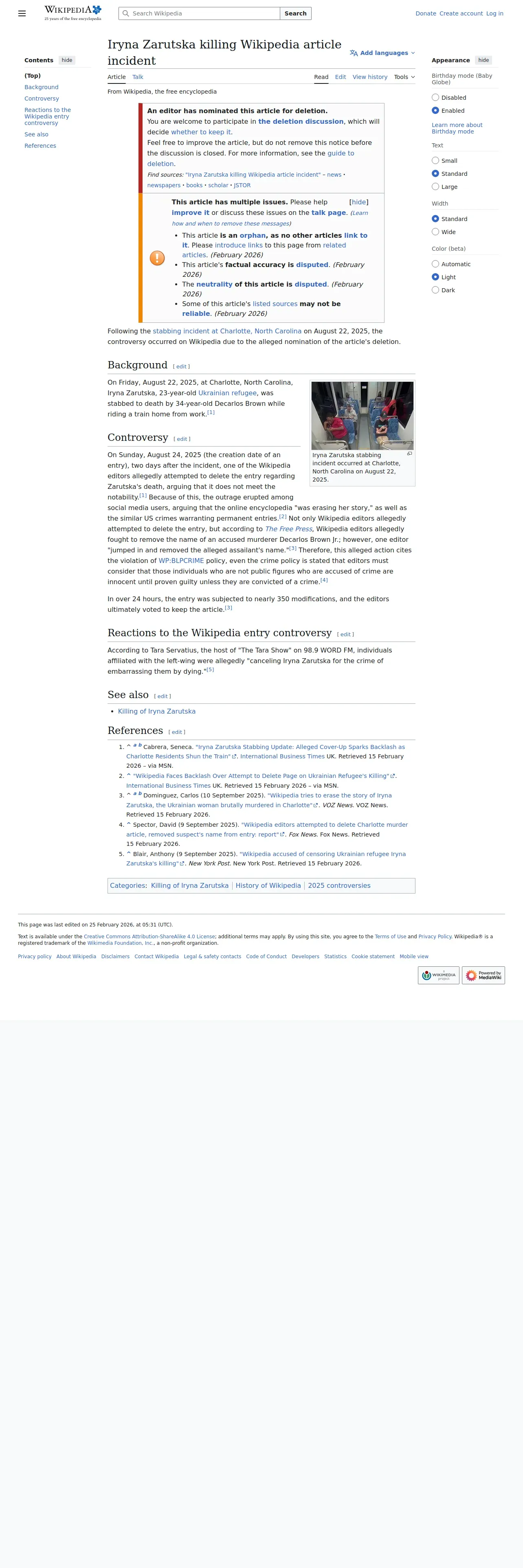 https://en.wikipedia.org:443/wiki/Iryna_Zarutska_killing_Wikipedia_article_incident