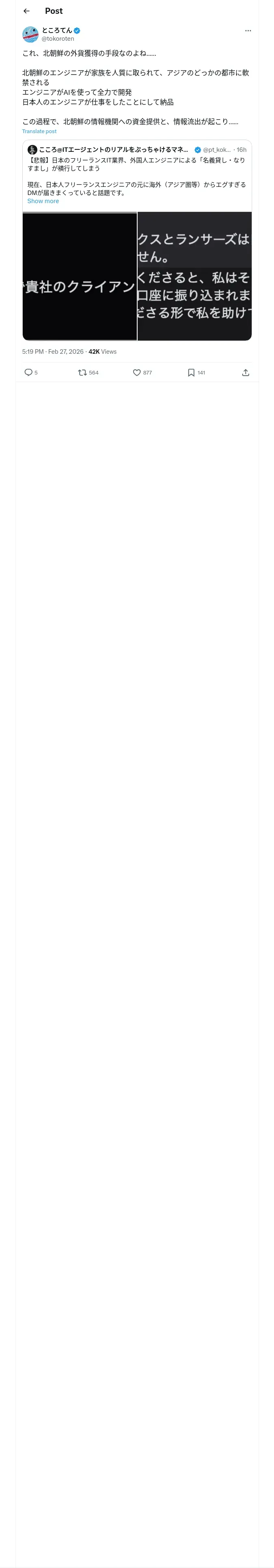 取得元URL: https://x.com:443/tokoroten/status/2027297431659098269