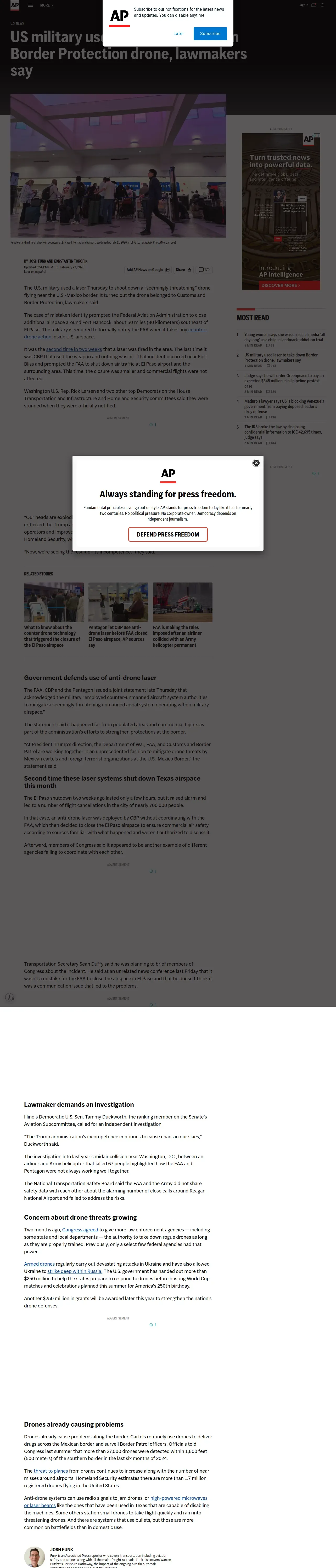 https://apnews.com:443/article/military-laser-border-drone-texas-airport-55aaab7093f7d6dd174f909f3875001c