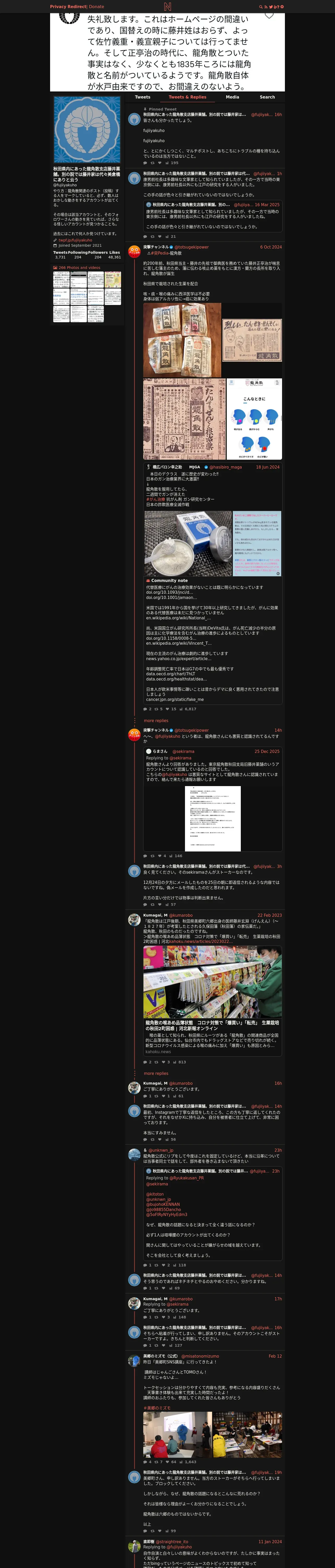 取得元URL: https://nitter.privacyredirect.com:443/fujiiyakuho/with_replies