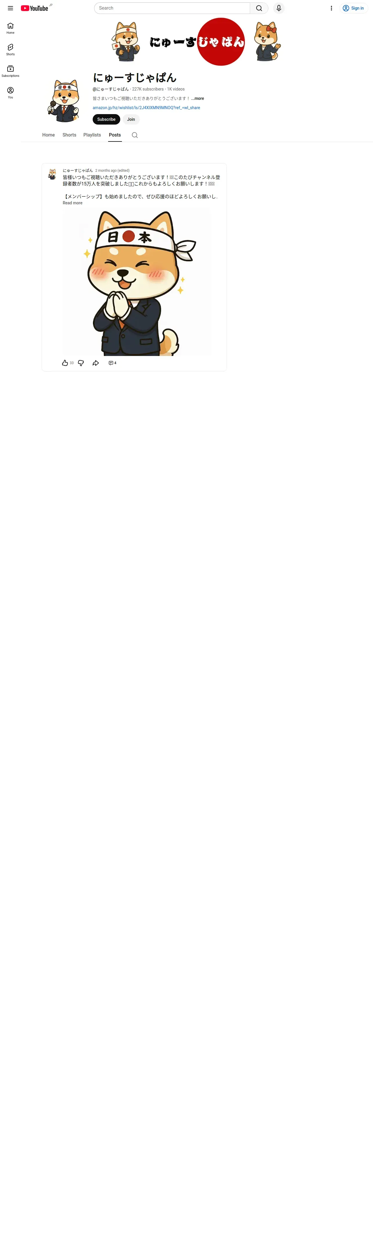 https://www.youtube.com:443/@%E3%81%AB%E3%82%85%E3%83%BC%E3%81%99%E3%81%98%E3%82%83%E3%81%B1%E3%82%93/posts