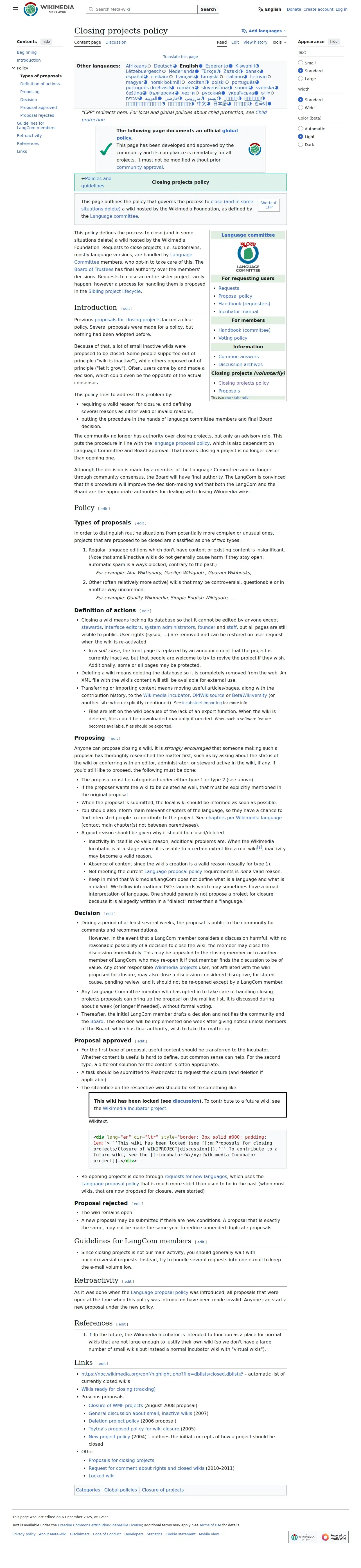 https://meta.wikimedia.org:443/wiki/Special:MyLanguage/Closing_projects_policy