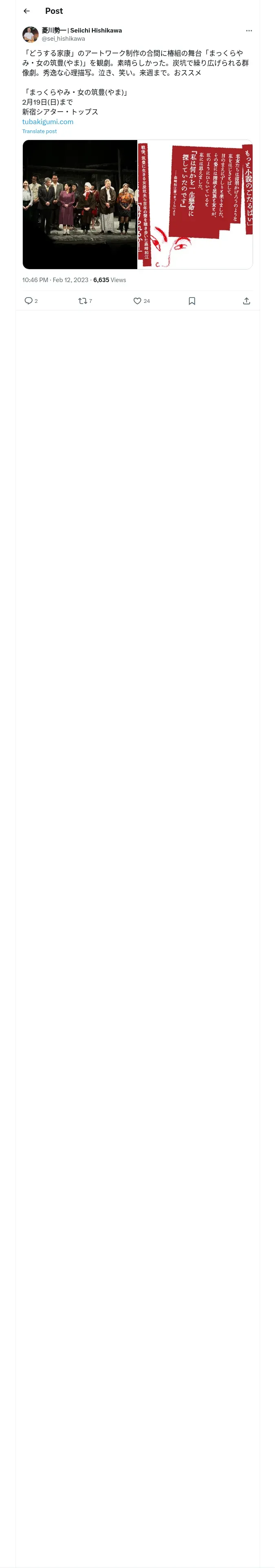 取得元URL: https://x.com:443/sei_hishikawa/status/1624767021421592578