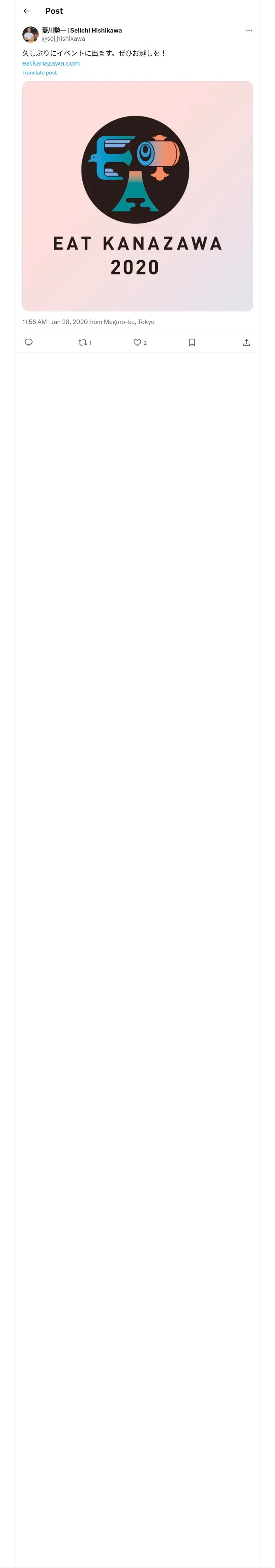 取得元URL: https://x.com:443/sei_hishikawa/status/1221990389294358529