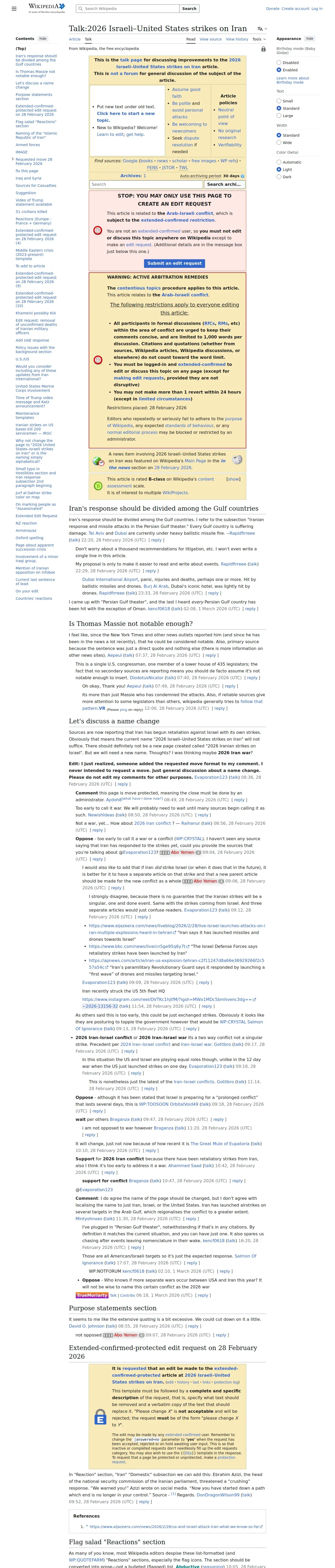 https://en.wikipedia.org:443/wiki/Talk:2026_Israeli%E2%80%93United_States_strikes_on_Iran