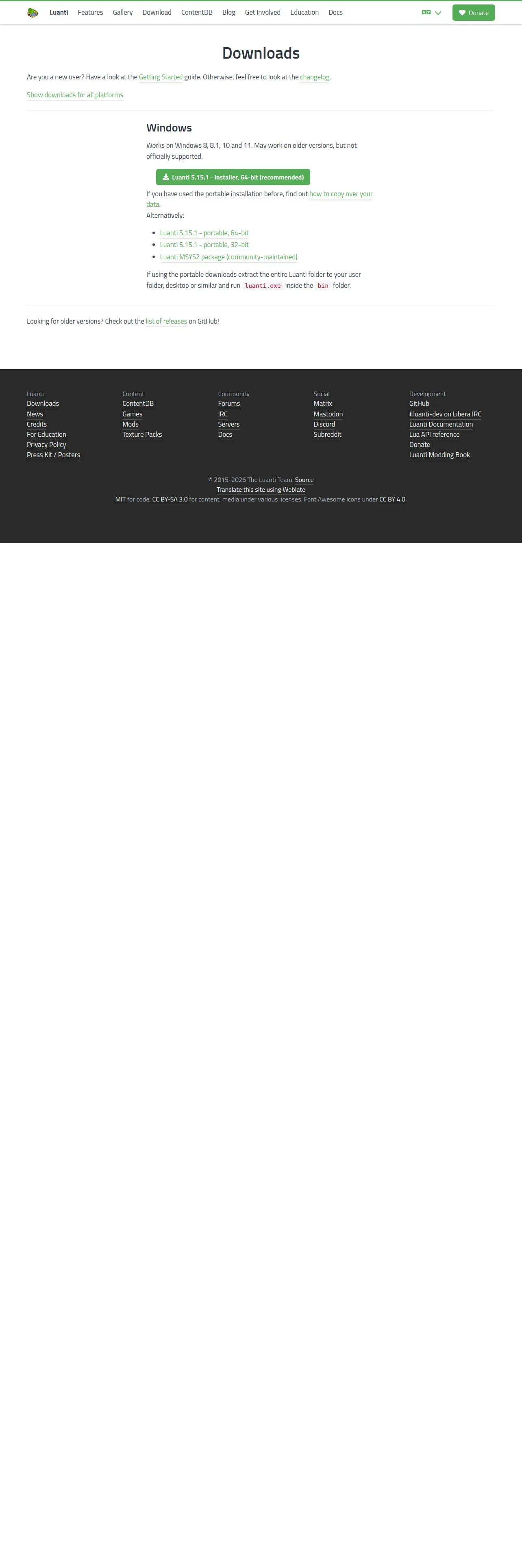 https://www.luanti.org:443/en/downloads/