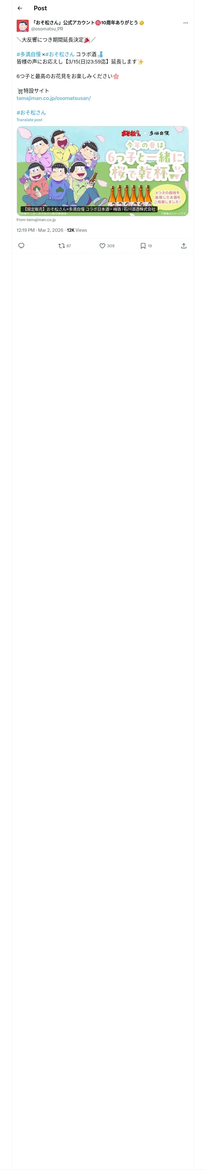 取得元URL: https://x.com:443/osomatsu_PR/status/2028309097158967560