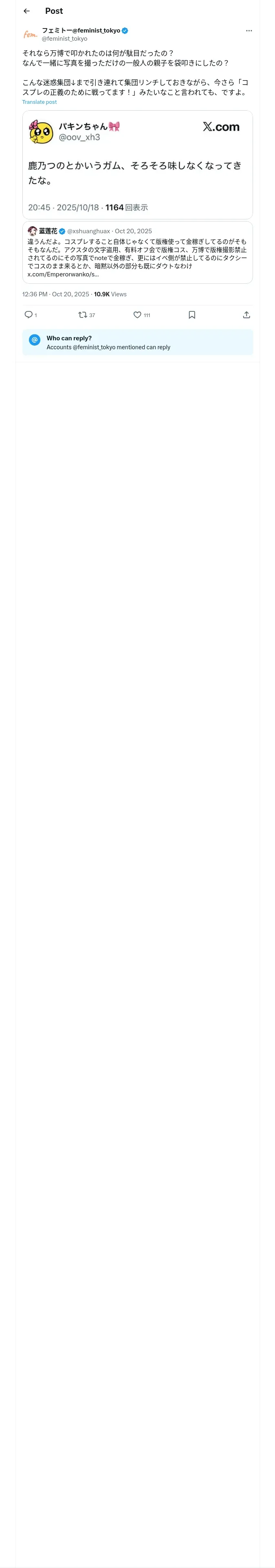 取得元URL: https://x.com:443/feminist_tokyo/status/1980115862947532908