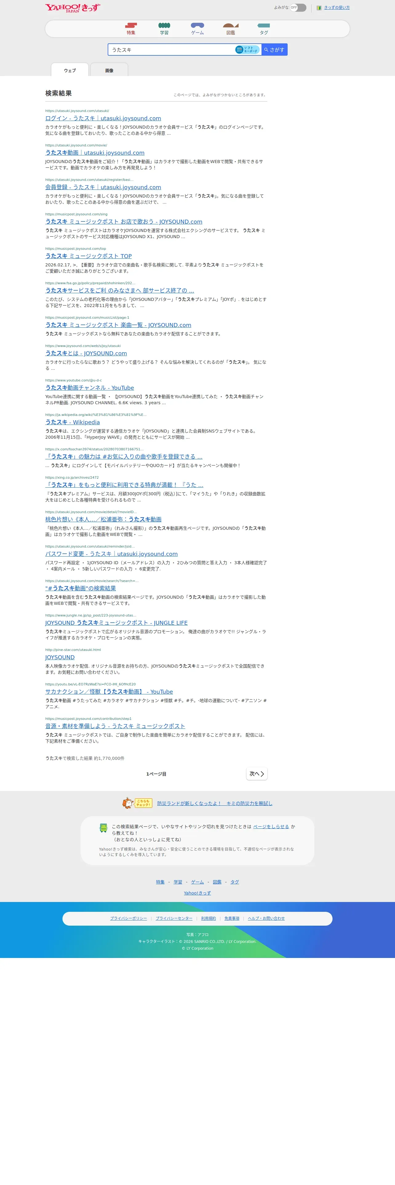 取得元URL: https://kids.yahoo.co.jp:443/search?p=%E3%81%86%E3%81%9F%E3%82%B9%E3%82%AD