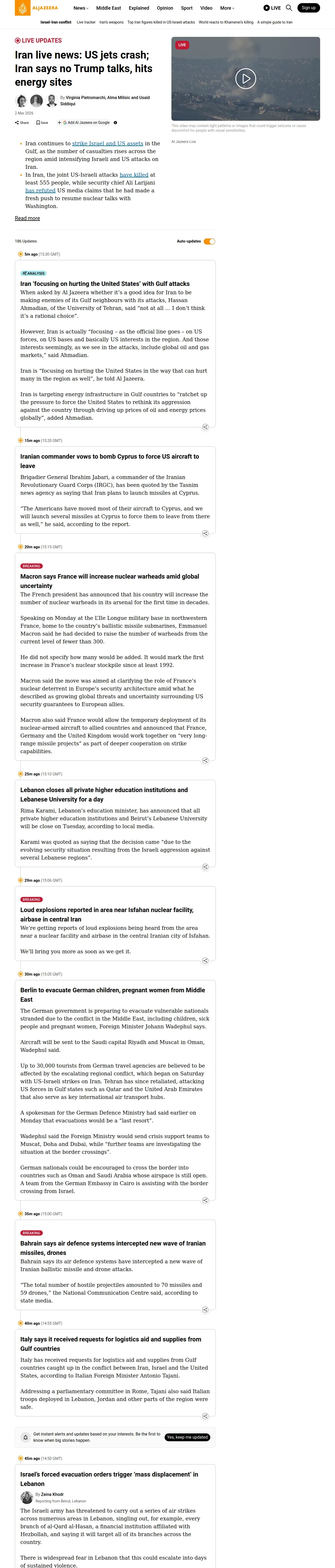 取得元URL: https://www.aljazeera.com:443/news/liveblog/2026/3/2/us-israel-attack-iran-live