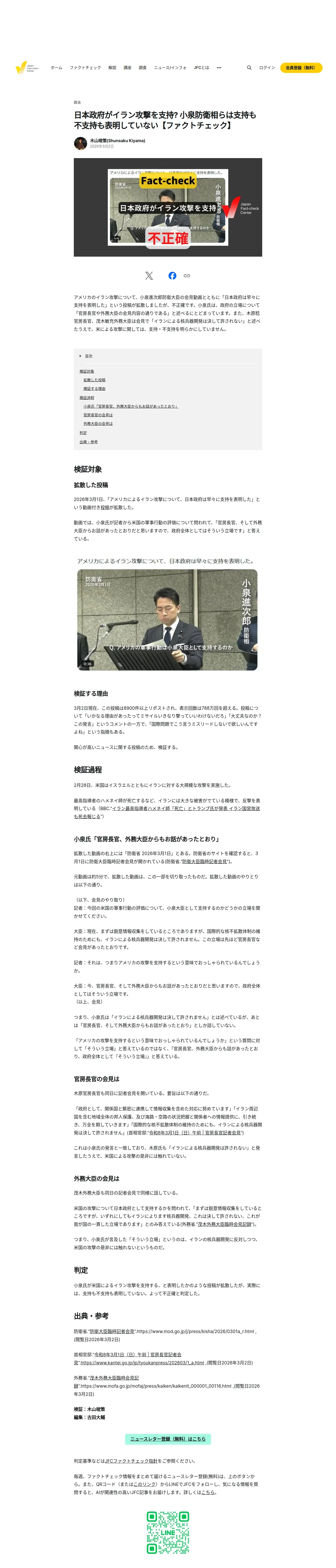 https://www.factcheckcenter.jp:443/fact-check/politics/japan-backs-us-strike-iran-koizumi/