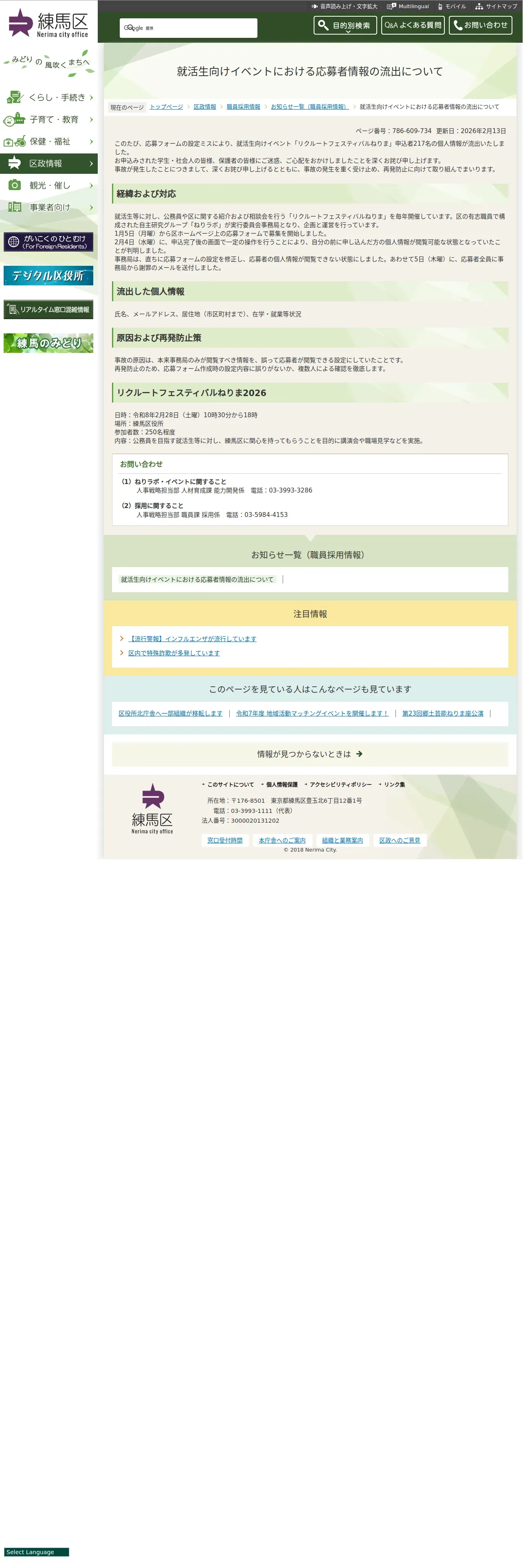 https://www.city.nerima.tokyo.jp:443/kusei/saiyo/oshirase/20260213.html