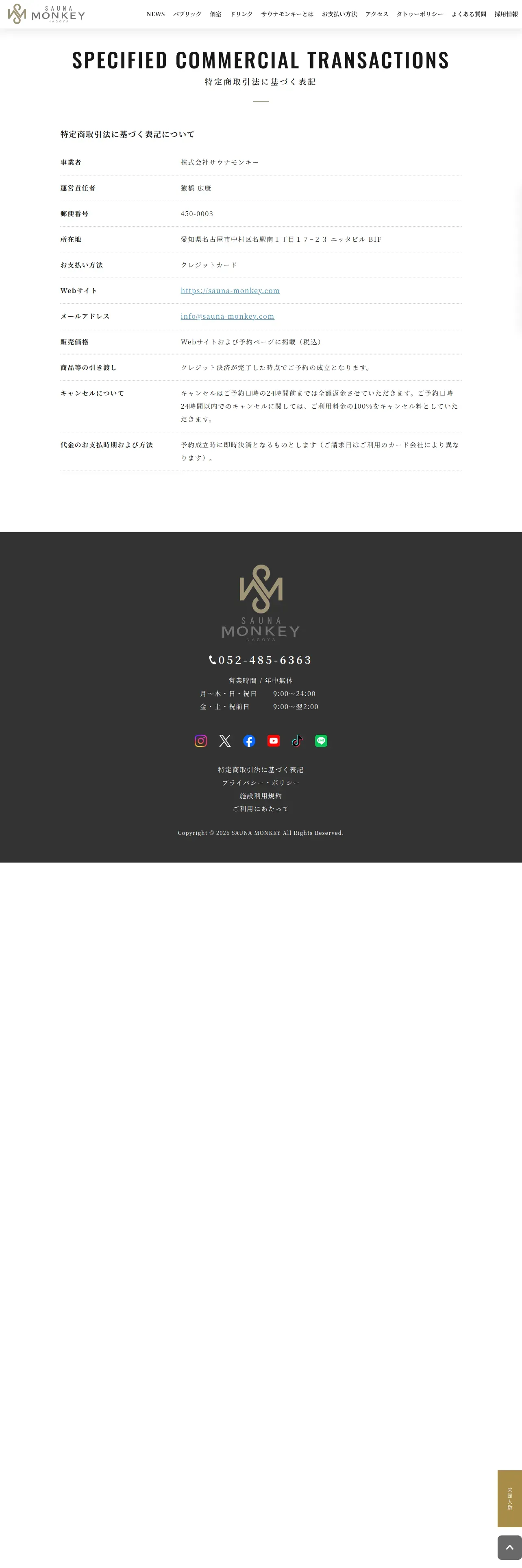 https://www.sauna-monkey.com:443/tokushohou.html