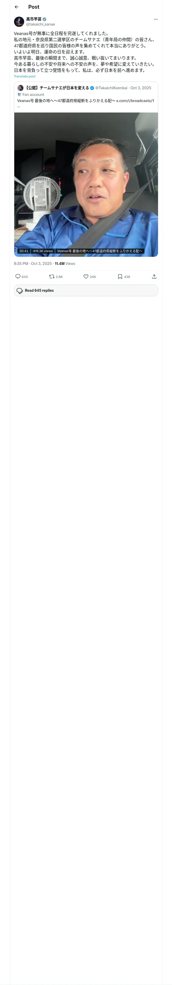 https://x.com:443/takaichi_sanae/status/1974075762107113784