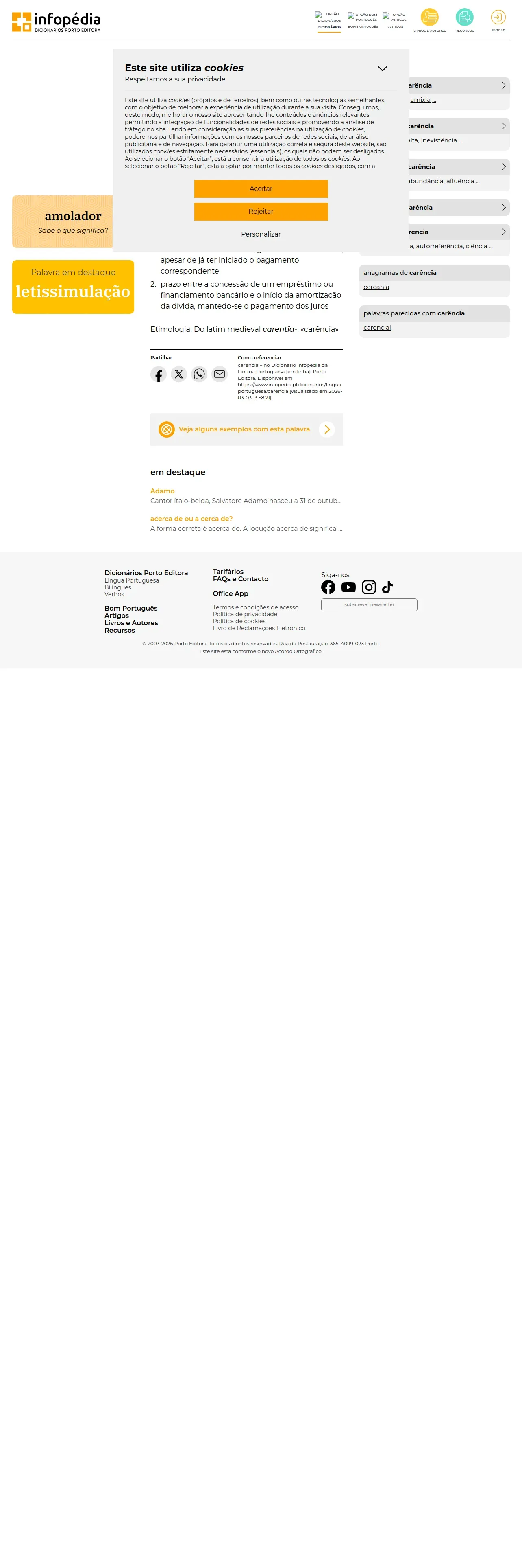 https://www.infopedia.pt:443/dicionarios/lingua-portuguesa/car%C3%AAncia??