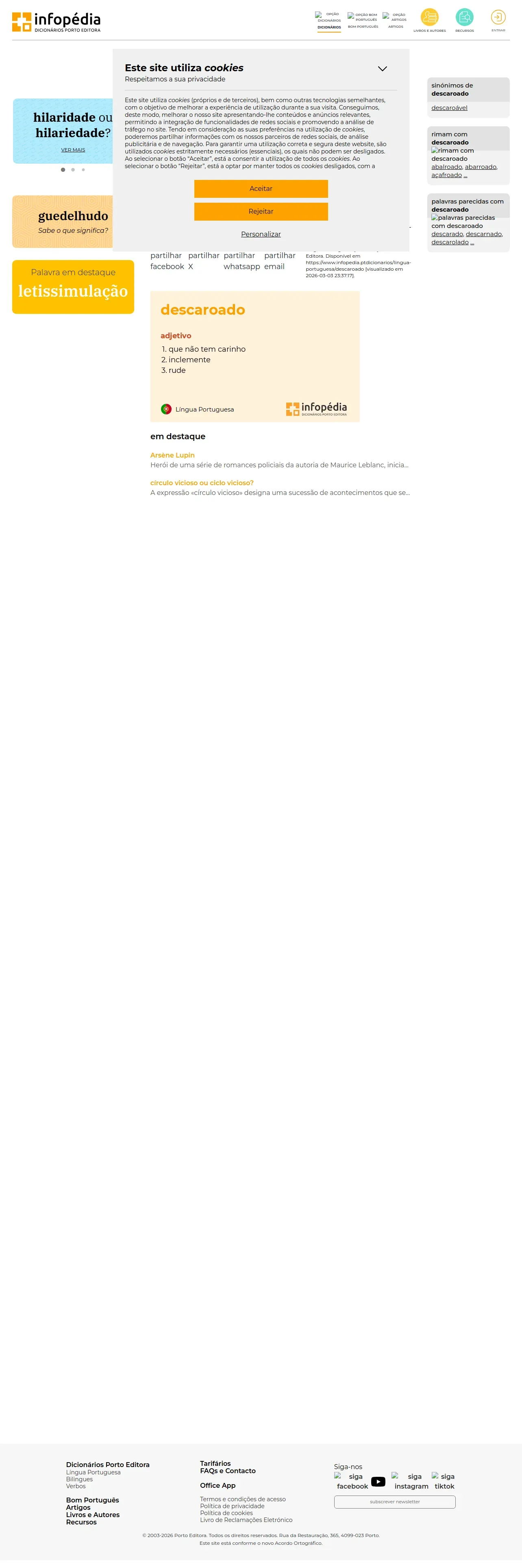 https://www.infopedia.pt:443/dicionarios/lingua-portuguesa/descaroado