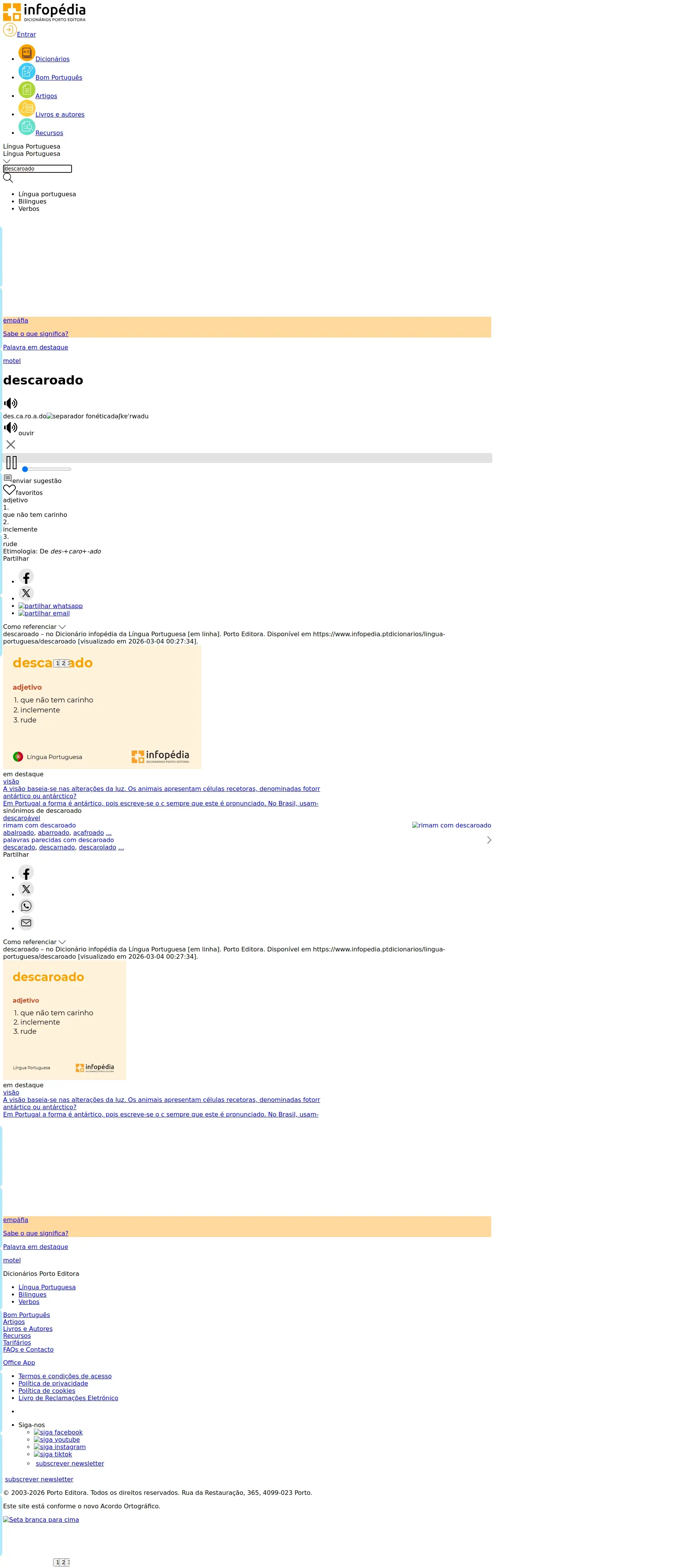 https://www.infopedia.pt:443/dicionarios/lingua-portuguesa/descaroado??
